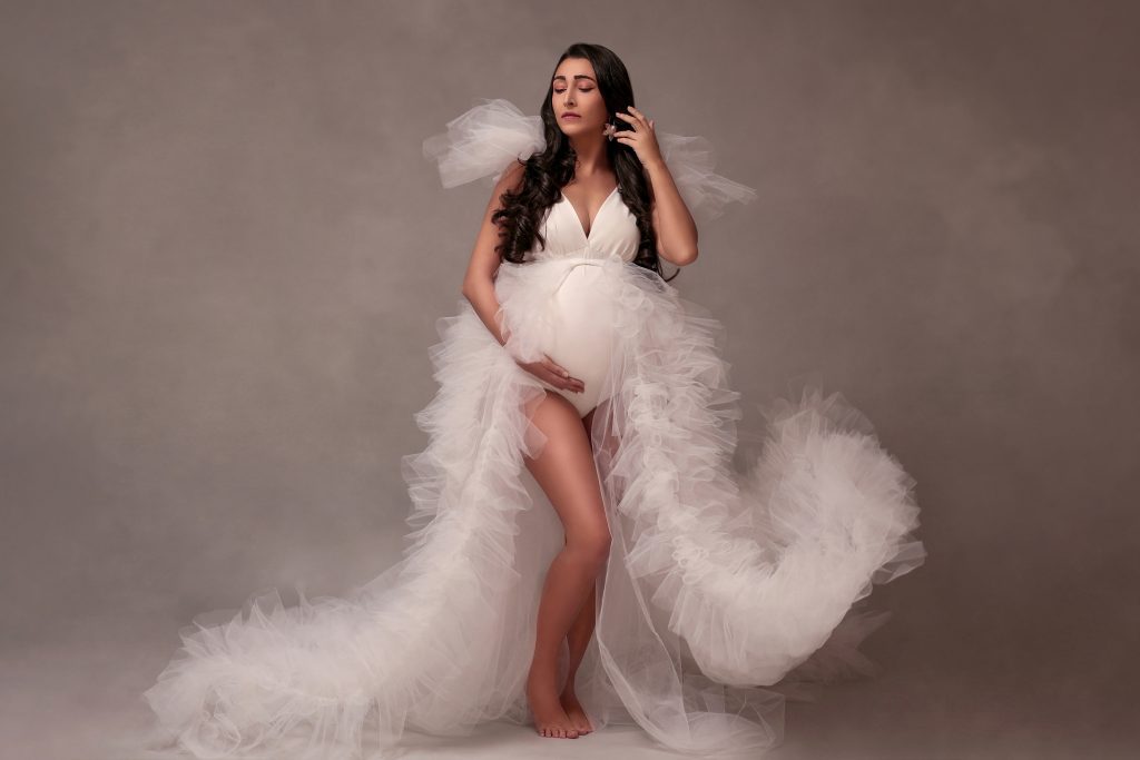 Esto depende de el tipo de sesión de embarazo que hayas elegido, de tus gustos y de lo que mejor te quede.